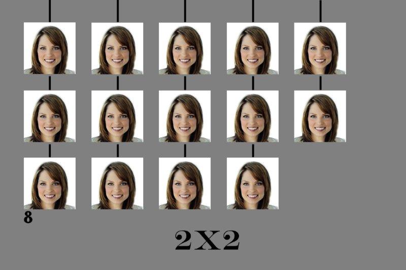 Fotos recortadas e dimensionadas para envio pela internet dentro dos requisitos oficiais para vistos e documentos.